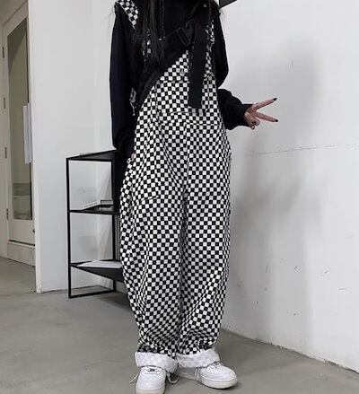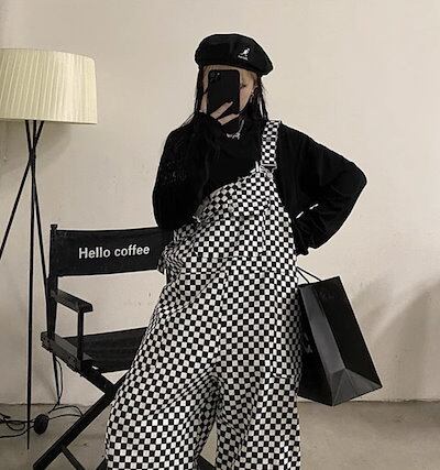レディース パンツ つなぎ オーバーオール ストレート ポケット 大人可愛い シンプル カジュアル おしゃれ レトロ こなれ感 ラフ メンズライク ボーイッシュ 個性的 チェック ギンガムチェック 柄