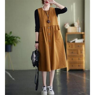 タンクワンピース サロペット レディース オーバーオール オールインワン ワンピース ノースリープ ゆったり ロング丈 カジュアル ゆるカジ 春秋 M L XL 2XL 大きいサイズ ブラック