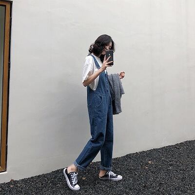 オールインワン レディース オーバーオール XS S M L 韓国 サロペット ワイドパンツ デニムワイトパンツ ロング丈 かわいい 大人可愛い シンプル カジュアル おしゃれ お洒落 かっこいい
