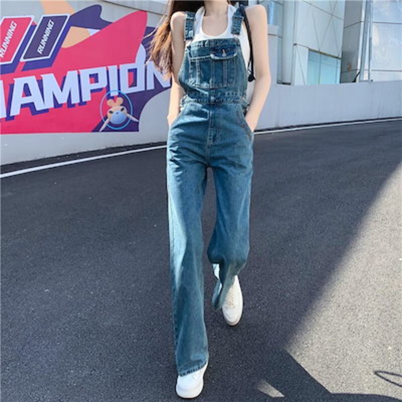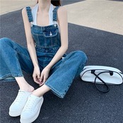 S_S.ILオールインワン レディース サロペット オーバーオール ジャンプスーツ S M L ブルー 青 デニム 大人カラー 無地 春 夏 秋 オールシーズン シーズンレス ノースリーブ 袖なし スリム 細身