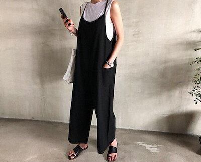 オールインワン レディース サロペット オーバーオール ジャンプスーツ ブラック 黒 ブラウン 茶色 大人カラー くすみカラー 秋カラー 無地 春 夏 秋 ワンサイズ フリーサイズ ノースリーブ