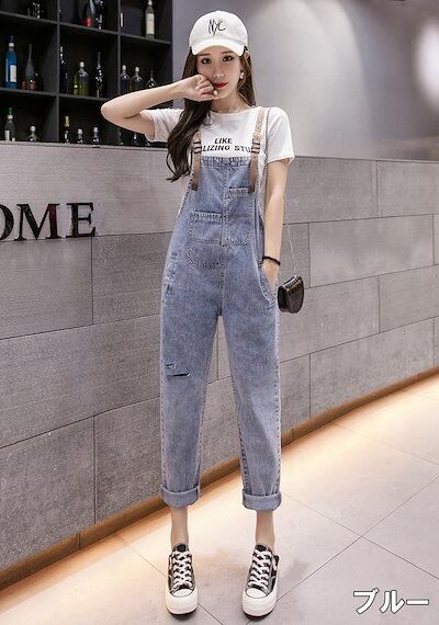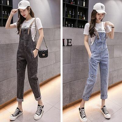 S_S.ILオールインワン レディース サロペット オーバーオール ジャンプスーツ ブラック 黒 ブルー 青 オールシーズン シーズンレス S M L XL 2XL デニム ジーンズ スクエアネック ノースリーブ