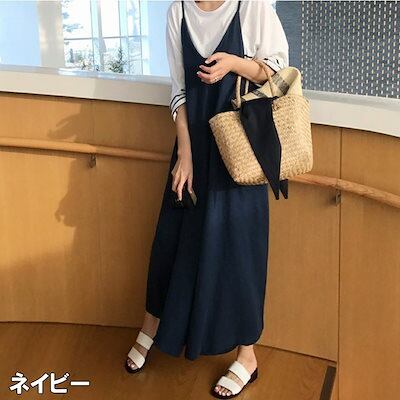 S_S.ILオールインワン レディース サロペット オーバーオール ジャンプスーツ ネイビー 紺 ベージュ 春 夏 S M L XL 無地 リネン Vネック 袖なし ノースリーブ ワイドレッグ パンツ