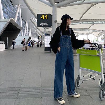 サロペット レディース デニム オーバーオール 袖なし ノースリーブ ワイド かわいい 大人可愛い