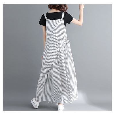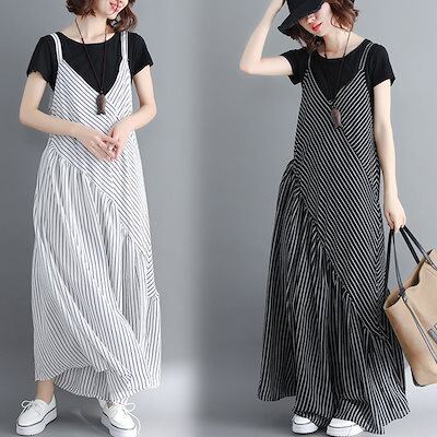 オールインワン レディース 送料無料 ワイドパンツ キャミワンピース ロングワンピース マキシ丈 オーバーオール サロペット ロングパンツ フレアパンツ ストライプ ボーダー ゆったり マリンテイスト