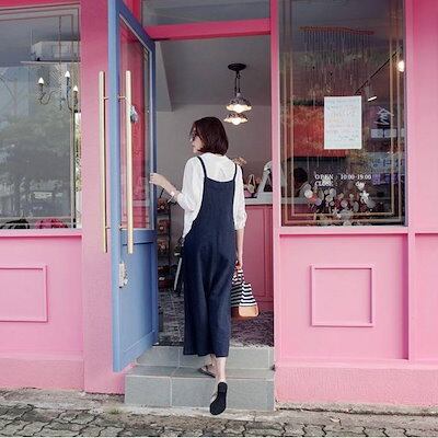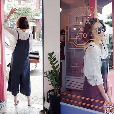 S_S.ILサロペット レディース オーバーオール オールインワン 女性 春 夏 韓国 オルチャン ハイウエスト パンツ 大人可愛い シンプル カジュアル お洒落 ネイビー ベージュ S M L XL 10代