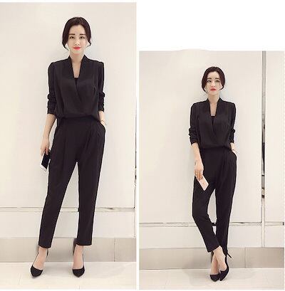 レディース オールインワン セットアップ フォーマル 細身 スーツセット 長袖 半袖