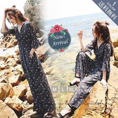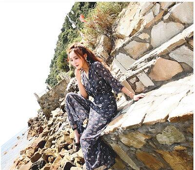 オールインワンレディースVネックシフォンガウチョパンツファッションパンツドレスワイドパンカジュアルおしゃれきれいめ