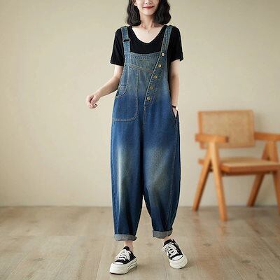 トロ デニムサロペット レディース 2024 春秋 新作 ゆったり 着痩せ オーバーオール