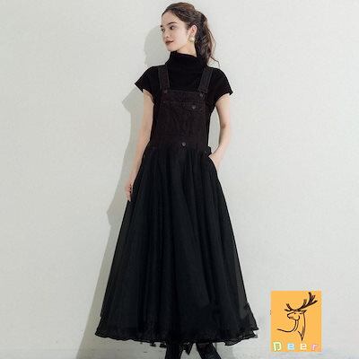 レディースワンピースオーバーオールサロペットサロペットジャンパースカート大人チュールドッキングデニムジャンパースカート洋服チュール