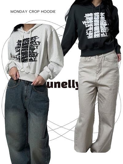 マンデー クロップ フードTシャツ [y2k / ビンテージ / ユニーク / カジュアル]