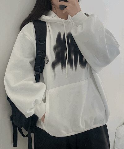[起毛/Y2Kムード]ユニーク捺染 ペインティング レタリング プリント アバンフィット 起毛 フードTシャツ (2color)