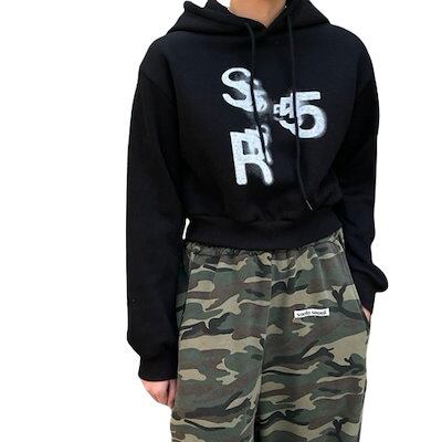 DreyMuseヒップホップ ムード クロップ 起毛 フード Tシャツ