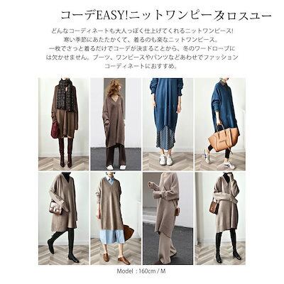 ニット チュニック レディース トップス 長袖 厚手 vネック ニットトップス ドロップショルダー ロングニット ニットワンピース 大きいサイズ ビッグシルエ