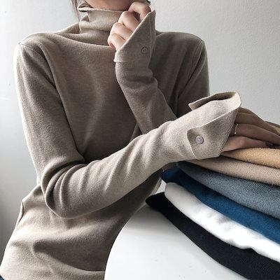 ニット インナー レイヤード 無地 ファッション タートルネック 長袖ブラウス トップス 長袖 レディース服