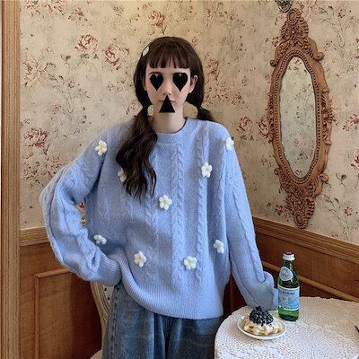 人気なリブニット ベーシックニット カシミヤタッチ 日系ツイスト ニットセーター おしゃれゆったりセーター レディース トップス裹起毛 長袖トップス