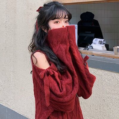 デザインセンス 露の肩 ニット レディース ック 怠惰な風 ゆったり 日系 クリスマス セーター