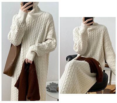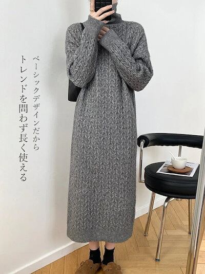 ケーブルニット ワンピース 新作 レディース ニットワンピース ニットワンピ ケーブル ワンピ 長袖 タートルネックロング丈