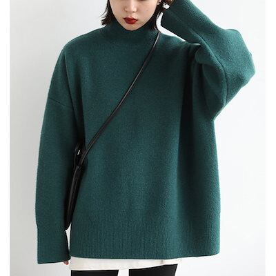 ニット セーター レディース ニットソー レディース チュニック トップス ブラウス 秋 ニットセーター 無地 ロング プルオーバー 冬 長袖 リブ編み 体型カバー ゆったり ニットトップス 柔らかい