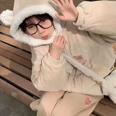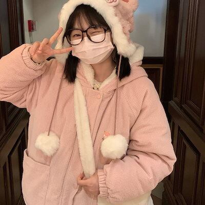 新作 コーデュロイ ジャケット 刺繍 綿入れ レディース ゆったり カジュアル フード付きアウター かわいい 厚手 中綿コート 学生 トップス