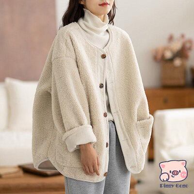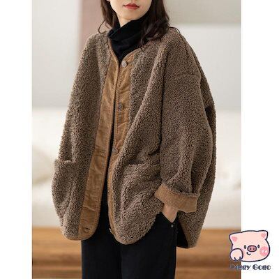 フリースジャケット レディース ボア ブルゾン アウター もこもこ ゆったり 羽織り 大きいサイズ 厚手 無地 暖か 防寒 通勤 おしゃれ 新作