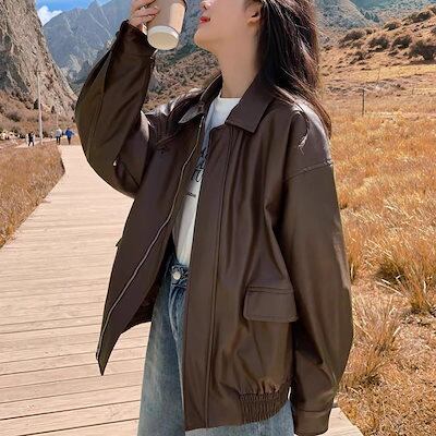 2024秋冬新作 レディース レザージャケットアウター長袖 革ジャン ゆったり オーバーサイジング ライダースジャケット通勤 通学