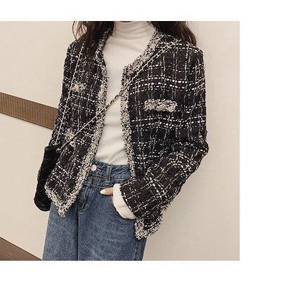 ファーウェイ コート ツイードコート レディース ツイードコート ラメいりツイードジャケット チェック柄スーツコートオシャレ 結婚式 パーティー