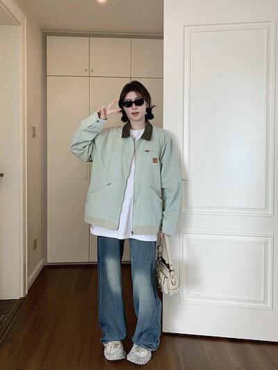 ジャケット ジャンパー スタジャン 長袖 ゆったり トップス アウター レディース 春 秋 着痩せ 通勤 通学 カジュアル ファッション