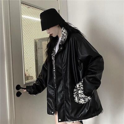 秋冬 人気 綿服 豹柄 アウター レディースファッション 皮ジャケット 両面着用 裏起毛 綿入れ トップス