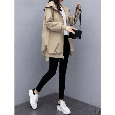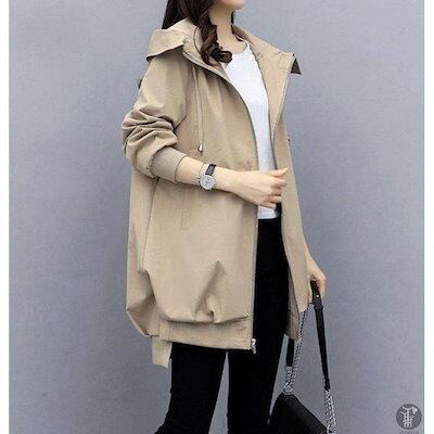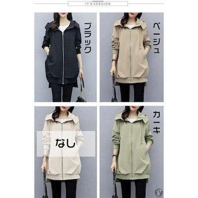 コート アウター レディース フード付き ゾン マウン 裏地あり 羽織り ファスナー ジップアップ 体型カバー 無地
