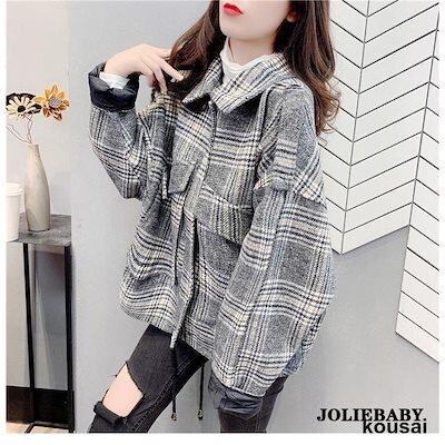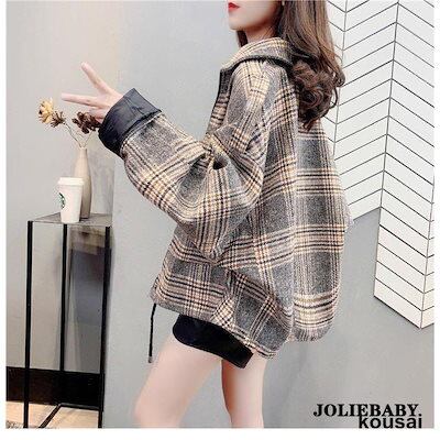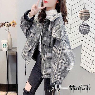 レディース 塩系 ショートコート 秋冬 ファッション 新作 モ 韓国 ゆったり ロ チェック柄 ス ブーム 街