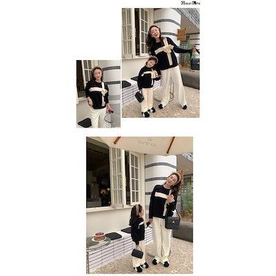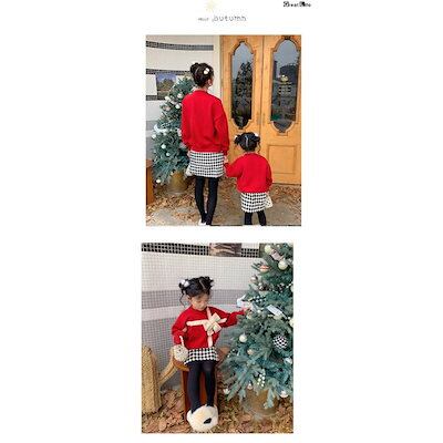 親子ペア セーター トップス ニット ジャンパー ペアルック ペアお揃い 姉妹 赤 黒 蝶結び リボン 秋 冬 韓国 親子コーデ 親子ペア レディース 女の子 母 娘 マ