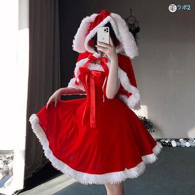 仕上げが細かいサンタコス レディース かわいい 兎の耳 マント付き ワンピース 猫耳 カシャ付き 手袋 サンタ 衣装 セクシー クリスマス セクシーコスプレ衣装 レディース