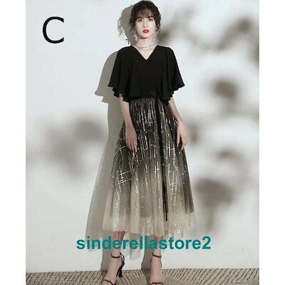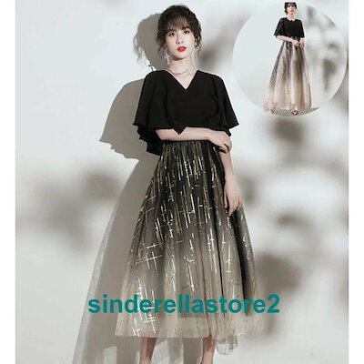 ワンピース きれいめ パーティードレス レディース ウェディングドレス ロングドレス キラキラ 可愛い ミモレ丈ドレス フリル袖 ファスナー フォー