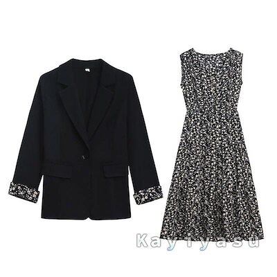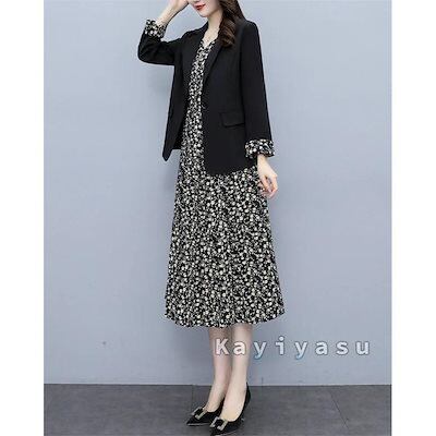 ワンピーススーツ レディース 2点セット テーラードジャケット 長袖 オシャレ OL 通勤 着痩せ 花柄 ワンピースセット フォーマル ママスーツ 卒園式 結