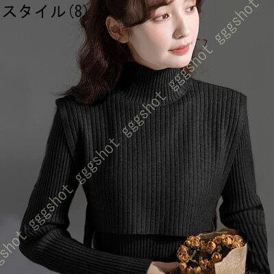 リブ ニット トップス セーター 秋ニット 2点セット レディース 長袖 防寒 タートルネック ベーシック ハイネック タートル リブ チュニック リブニット 冬 秋