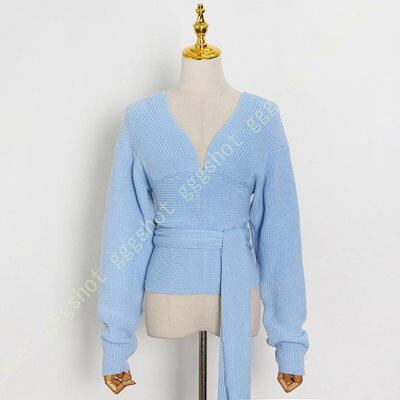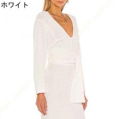 おしゃれデザイン! セーター レディース 長袖 Vネック ニット インナー カットソー ストレッチ 伸縮性 トップス 春秋冬 シンプル 無地 カジュアル