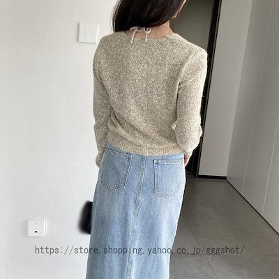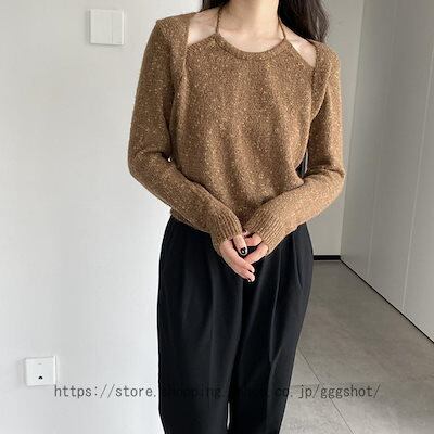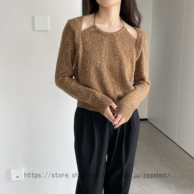 リブニット レディース 長袖 ホルターネック クルーネック セーター トップス カットソー インナー ゆったり 体型カバー フリーサイズ 可愛い