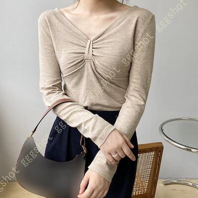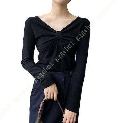 ニット レディース リブニット セーター 長袖 秋 秋冬 毛玉になりにくい Vネック 薄手 ニット セーター レディース タイト ストレッチ 無地 カジュアル リブ