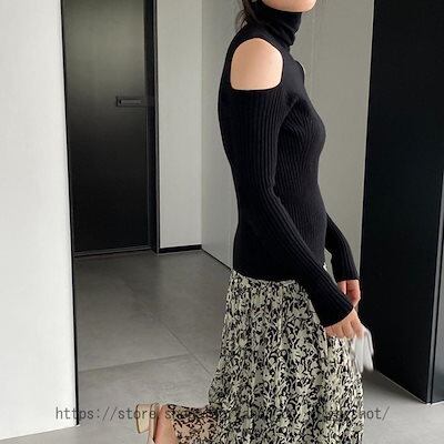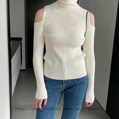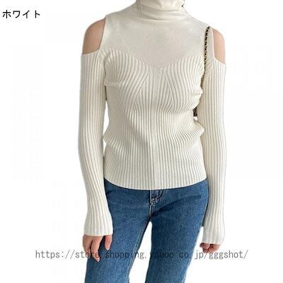レディース リブ ニット セーター カットソー トップス ロング スリーブ タイトニット 秋セーター ハイネック 長袖 ベーシック キレイめ インナー