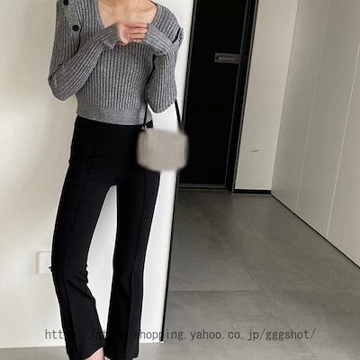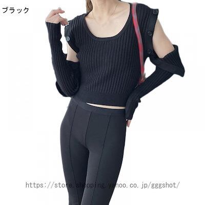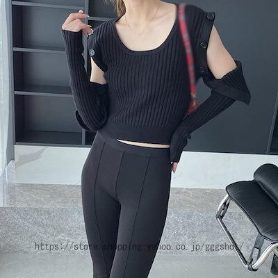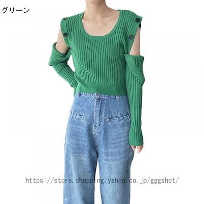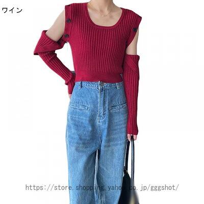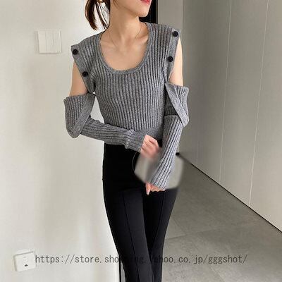 ショルダースリットニット セーター レディース タイト インナー ベーシック 無地 長袖 トップス 秋ニット おしゃれ ボタン付き 2way セーター