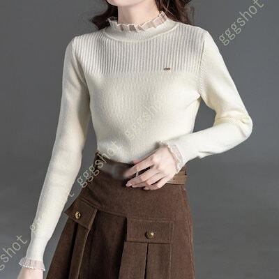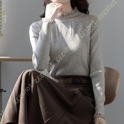 セーター レディース ニット リブ タートルネック 長袖 ストレッチ 秋 リブニット 柔らかい ニット トップス ベーシック 伸縮 無地 厚手 秋冬 着やせ 長袖