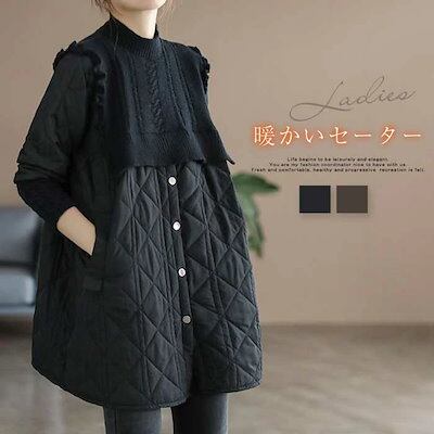 チュニック ワンピース レディース ニットセーター 中綿 セーター プルオーバー 冬 厚手 トレーナー 春秋 大きいサイズ パーカー トップス 暖かい 長袖 ロング Tシャツ 秋 体型カバー 着痩せ