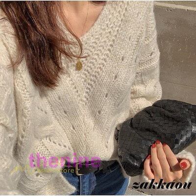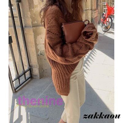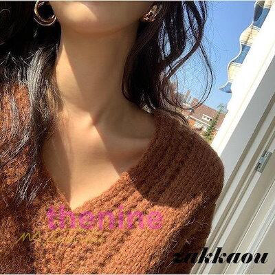 ニット レディース 秋服 秋 冬 長袖 お出かけ 女性 トップス 通勤 着痩せ Vネック OL チュニック ゆるシルエット ゆったり 無地 シンプル カジュアル レトロ風