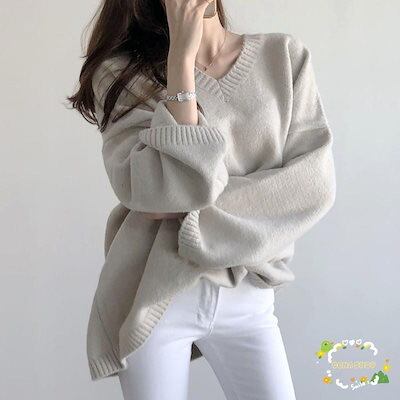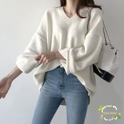 ニット レディース トップス 長袖 秋 冬 セーター Vネック ニットソー プルオーバー 春 カジュアル ゆったり リブ オフィス シンプル インナー 重ね