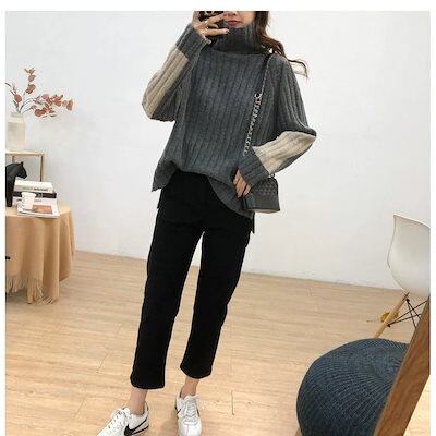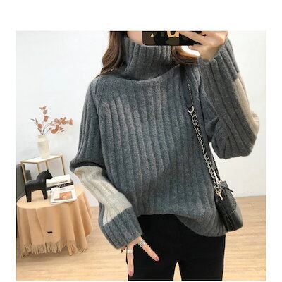 新作 トレンドセーター 長袖 ショートセーター トップス プルオーバー レディース ハイネック カットソー ソフト カジュアル きれいめ 着痩せ 新作 2色スプライス 30代