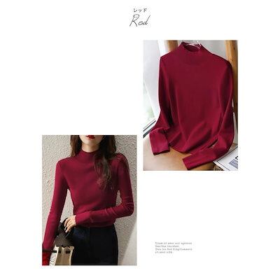 ニットトップス レディース 春 夏 春夏 黒 長袖 セーター トップス ハイネック アイボリー レッド ブラウン チャコール グレー ネイビー ブラック