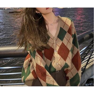 ニットカーディガン セーター レディース チェック柄 カーディガン 羽織 長袖 ニット
