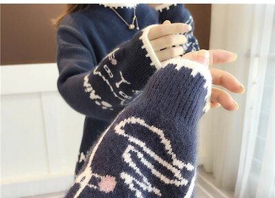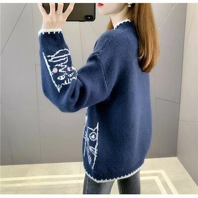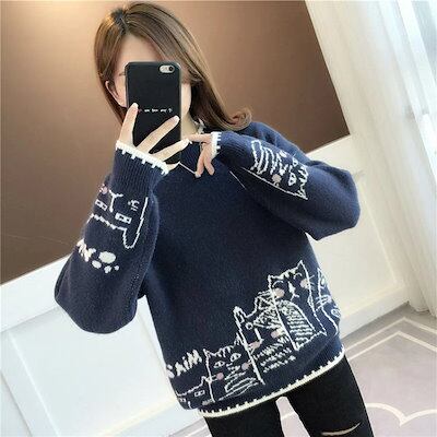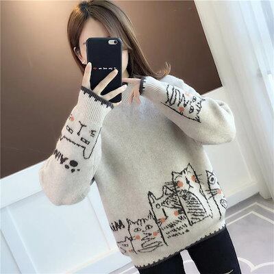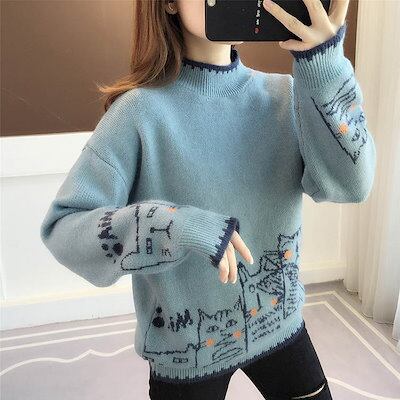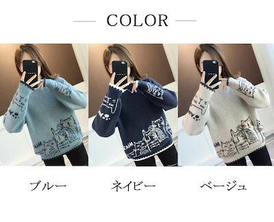 ニット セーター レディース 秋 冬 猫 トップス 長袖 ゆったり セーター きれいめ プルオーバー タートルニット お洒落 カジュアル かわいい