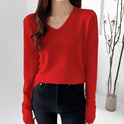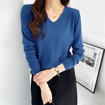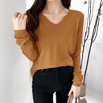 ニット トップス 長袖 Vネック レディース Vネックニット セーター Vネックセーター ロンT 長袖ロンT カットソー インナー 無地 シンプル 薄手 オフィスカジュアル 上品 きれいめ 大人 秋冬
